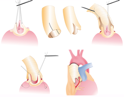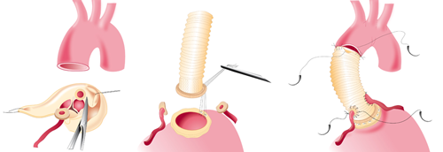 De operatie die u moet ondergaan, hangt sterk af van de plaats waar het aneurysma zit. Een veel voorkomende plek is direct boven het hart. In dit geval wordt de operatie uitgevoerd door het borstbeen te openen en uw lichaam aan te sluiten aan de hart-longmachine. Uw hart wordt dan tijdelijk stilgelegd om de verwijding te kunnen vervangen door een nieuwe buisprothese. Als de aortaklep betrokken is bij de verwijding kan het zijn dat u een klepsparende operatie ondergaat waarbij uw eigen aortaklep opnieuw wordt opgehangen in de nieuwe buis.