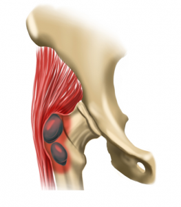 Een slijmbeurs is een soort stootkussentje. Het bevindt zich vaak op plaatsen in het lichaam waar pezen of spieren vlak langs het bot lopen. De slijmbeurs voorkomt dat de pees/spier over het bot gaat schuren. Rondom het heupgewricht bevinden zich verschillende slijmbeurzen. Daarvan is de slijmbeurs aan de zijkant van de heup, ter hoogte van de benige knobbel, het vaakst ontstoken. Het kan voorkomen dat er teveel druk op de pees komt en de slijmbeurs daardoor “ontstoken” raakt. Er is dan sprake van een irritatie, niet veroorzaakt door een bacterie. We spreken dan ook wel van een “steriele ontsteking”.