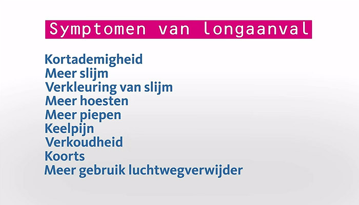 In samenwerking met het Longfonds heeft het Catharina Ziekenhuis een video gemaakt over een longaanval. Veel mensen met COPD ondernemen geen actie bij een longaanval, terwijl dit wél noodzakelijk is. U kunt zelf veel doen om het risico op een longaanval te verkleinen en ziekenhuisopname te voorkomen. Met het longaanval actieplan leert u de signalen herkennen en weet u wat u moet doen.
