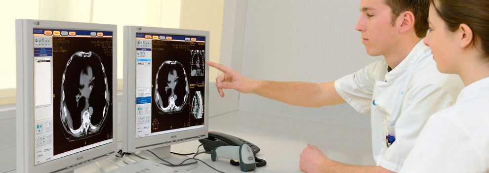 We maken een CT-scan van het te bestralen gebied. De beelden van de CT-scan gebruiken we om een bestralingsplan te maken.