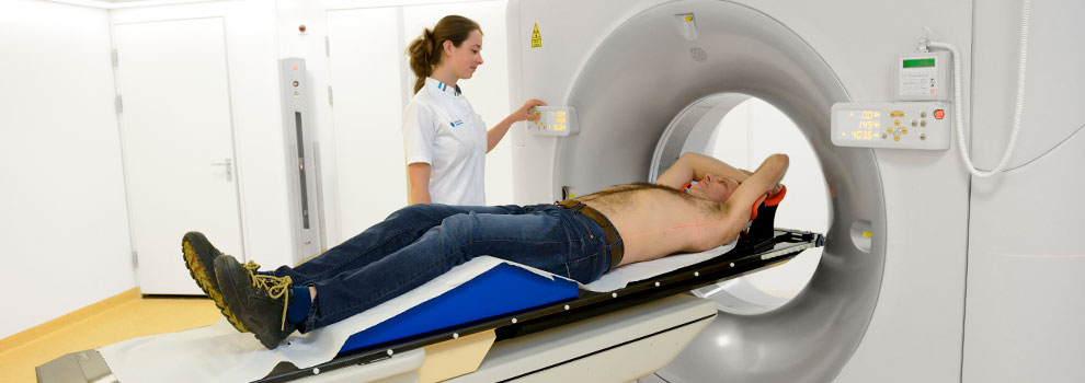 We maken een CT-scan van het te bestralen gebied. De beelden van de CT-scan gebruiken we om een bestralingsplan te maken.