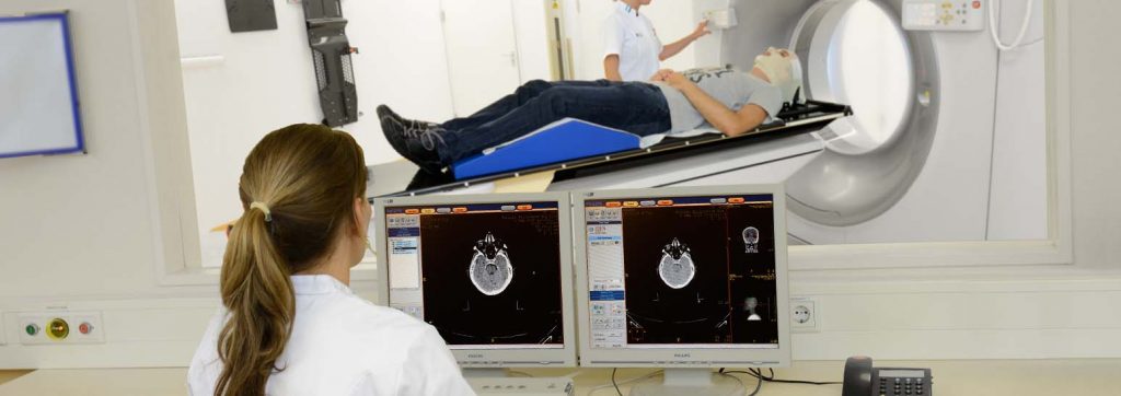 We maken een CT-scan van het te bestralen gebied. De beelden van de CT-scan gebruiken we om een bestralingsplan te maken.