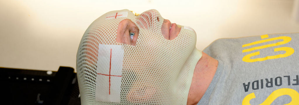 - Aantekenen van het bestralingsgebied op het masker; zodat wij geen lijnen op uw hoofd of hals hoeven aan te tekenen.