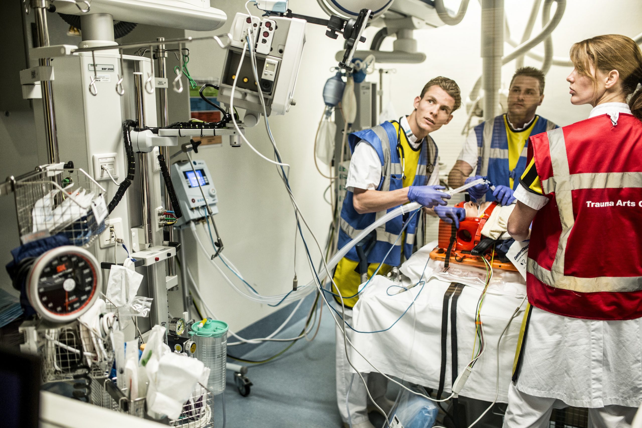 “Over een paar minuten komt een ambulance binnen met een patiënt die zojuist is gereanimeerd. Snel wordt een kamer in gereedheid gebracht en weet ik welke verpleegkundigen er in mijn team zitten. We staan klaar. Als de patiënt arriveert, luister ik naar de overdracht. In mijn hoofd loop ik de stappen door die we moeten nemen. Ineens klinken er overal toeters en bellen en is hij van het ene op het andere moment instabiel. Ondertussen trekt de oudste van dienst aan mijn jas dat er een kind binnen is gebracht met een gebroken armpje. Dit moet gezet worden. Hoe lang gaat dit nog duren, vraagt ze me. Het team is opnieuw gestart met reanimeren en ik zie een hartslag verschijnen op het scherm. We krijgen hem stabiel. Ik bel de cardioloog om door te geven dat er een dotter aan komt. Vervolgens loop ik snel met de verpleegkundige mee naar de kamer aan het einde van de gang, waar een kleuter me met paniekerige ogen aankijkt. Haar armpje staat in een driehoek. Met een sedatie, een lichte narcose, kan ik de arm zetten zodat deze netjes in het gips kan.