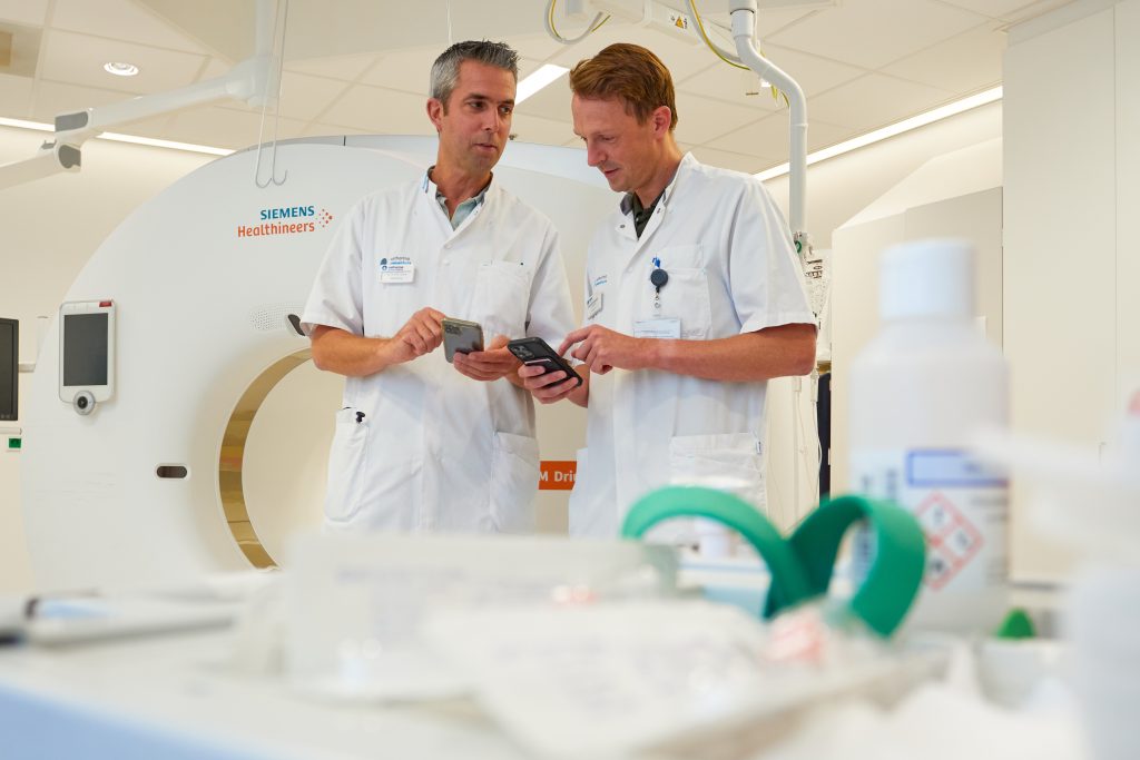 Het Catharina Ziekenhuis beschikt sinds kort over een applicatie die gebruik maakt van kunstmatige, ofwel artificiële intelligentie (AI). Hiermee worden afsluitingen van de grotere hersenvaten die tot een herseninfarct leiden, automatisch gedetecteerd. “Met deze software boeken we in ons ziekenhuis per patiënt zeker tien minuten tijdwinst”, zegt interventieradioloog Joris Hendriks. “En iedere minuut tijdwinst in de behandeling voorkomt verdere schade aan de hersenen”, valt neuroloog dr. Rob Gons hem bij.