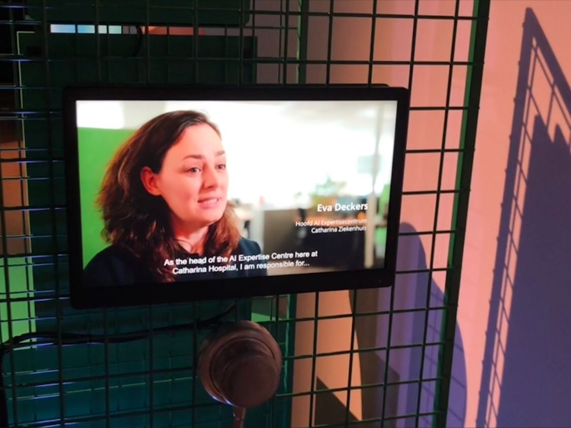 Hoewel er nog veel werk te verzetten is, loopt het ziekenhuis toch voorop in de AI-ontwikkeling. Het is daarom onderdeel van de brAInpower-expositie in het Philips Museum over de geschiedenis en toepassing van AI. Deel van de tentoonstelling is een video met Eva Deckers (foto) en haar collega’s Coen Hurkmans (klinisch fysicus) en Nienke Bakx (Qualified Medical Engineer).
