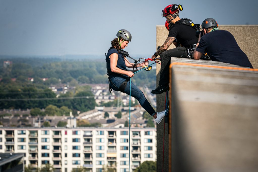 Tenslotte kende het jaar ook een aantal mooie hoogtepunten. In september namen we dit heel letterlijk en was er even ruimte voor ontspanning. Vanaf het dak op 70 meter hoogte van het hoofdgebouw daalden veertig collega’s al abseilend of via een zipline af van het ziekenhuis.