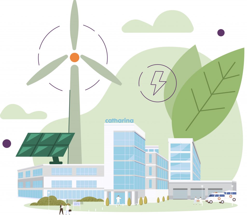 Dat niveau behaalde het Catharina Ziekenhuis al. Het ziekenhuis is nu onderweg naar zilver. “En daarna gaan we uiteraard voor goud”, aldus Sandra Korff de Gidts, energiecoördinator van het Catharina Ziekenhuis. “De eerste stappen voor zilver zijn al gezet. Zo draait het ziekenhuis sinds kort volledig op windenergie, groene stroom dus. En ook op het gebied van aardgas zijn er interessante ontwikkelingen. We hebben een routekaart opgesteld met maatregelen om ruimteverwarming en bevochtiging slimmer en zonder aardgas uit te voeren. Dit is niet van vandaag op morgen geregeld. Het gaat om grote en dure installaties die van oudsher sterk met onze gebouwen verweven zijn. Maar het eerste begin is gemaakt.”