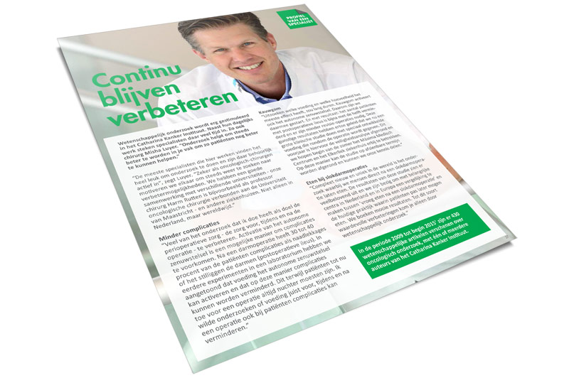 “De meeste specialisten die hier werken vinden het heel leuk om onderzoek te doen en zijn daar behoorlijk actief in”, zegt Luyer in het tijdschrift Catharina. “Zeker als oncologisch-chirurgen motiveren we elkaar om steeds weer te zoeken naar verbetermogelijkheden. We hebben een goede samenwerking met verschillende universiteiten – onze chirurg Harm Rutten is bijvoorbeeld als professor oncologische chirurgie verbonden aan de Universiteit van Maastricht – en andere ziekenhuizen. Niet alleen in Nederland, maar wereldwijd.”