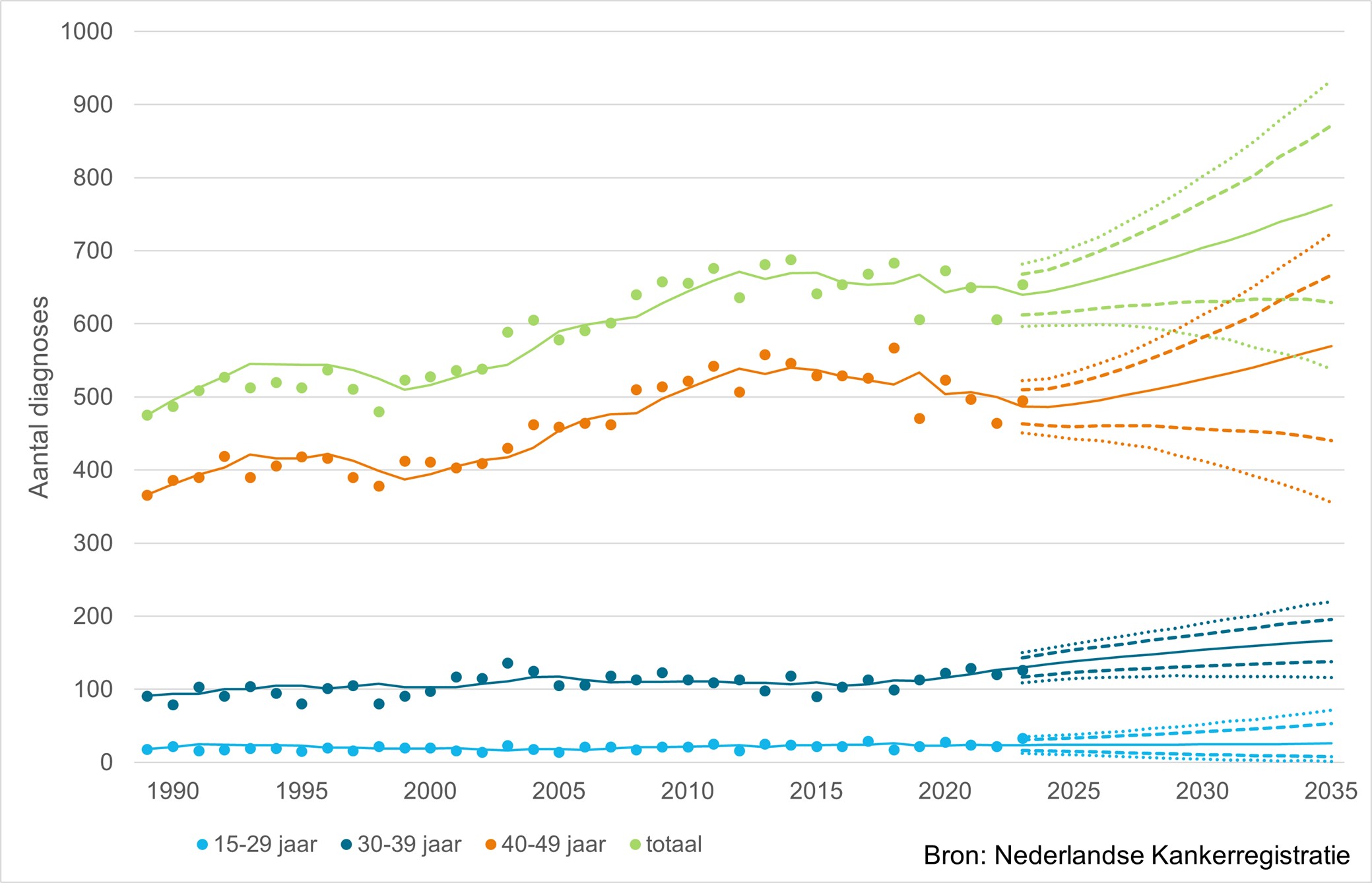 In 2023 kregen 654 Nederlanders tussen de 15 en 49 jaar de diagnose darmkanker. In 1998 was dit aantal nog veel lager, namelijk 6,3 per 100.000 mensen. In 2023 was dit gestegen naar 9,5 per 100.000 mensen. De verwachting is dat dit aantal in 2035 zal oplopen tot 762 nieuwe gevallen per jaar. Hoewel het aantal jonge patiënten in verhouding nog steeds laag is, is de toename duidelijk zichtbaar.