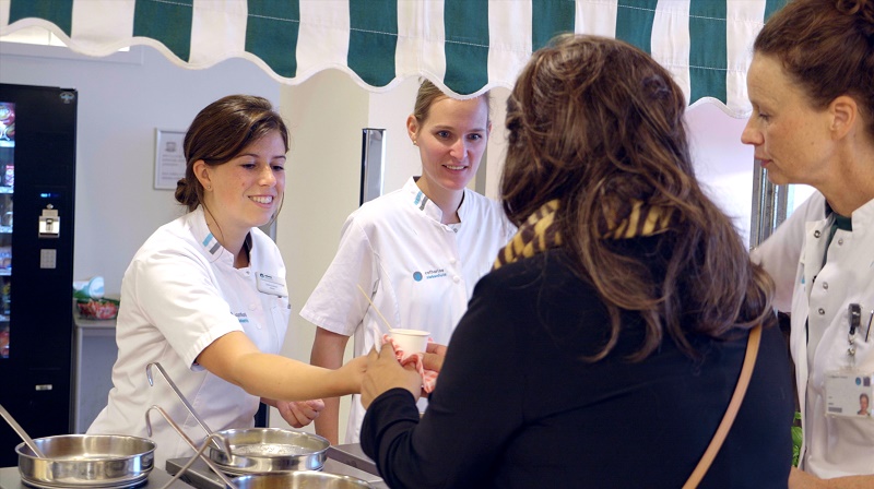 Diëtisten delen gratis soep uit aan patiënten en bezoekers van het Catharina Kanker Instituut