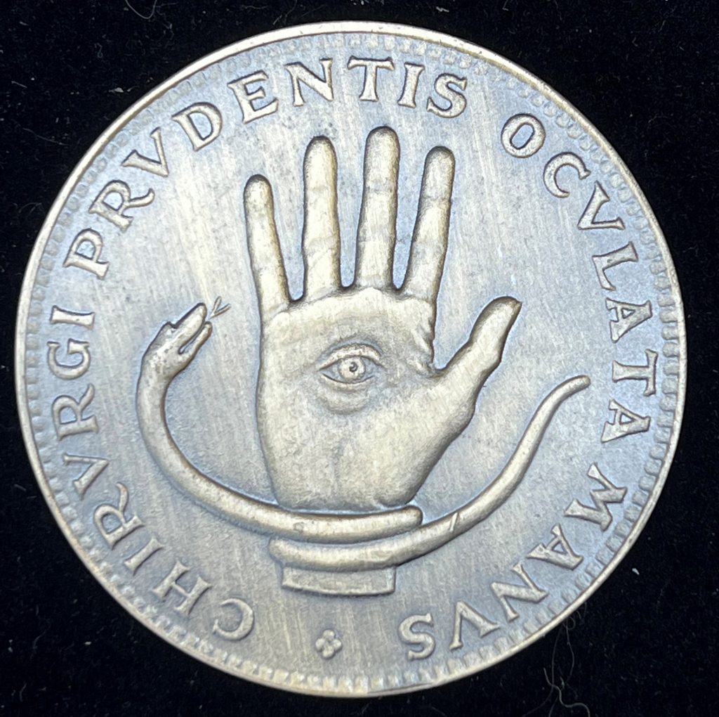 Het symbool op de achterkant van de penning spreekt Rutten als chirurg in het bijzonder zeer aan. “Dit is een hand met daarin een oog, met de zeer toepasselijke tekst ‘chirurgia prvdentis ocvlata manvs’ ofwel de hand van een ervaren chirurg is van een oog voorzien”, aldus Rutten. Bij veel van zijn complexe operaties in het kleine bekken was het zicht vaak beperkt en kon hij letterlijk alleen voelen om te ‘zien’ wat er aan de hand was en hoe het beste geopereerd kon worden.