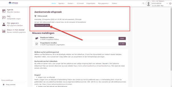 3. U ziet de geplande afspraak direct bovenaan op de homepage van mijnCatharina.