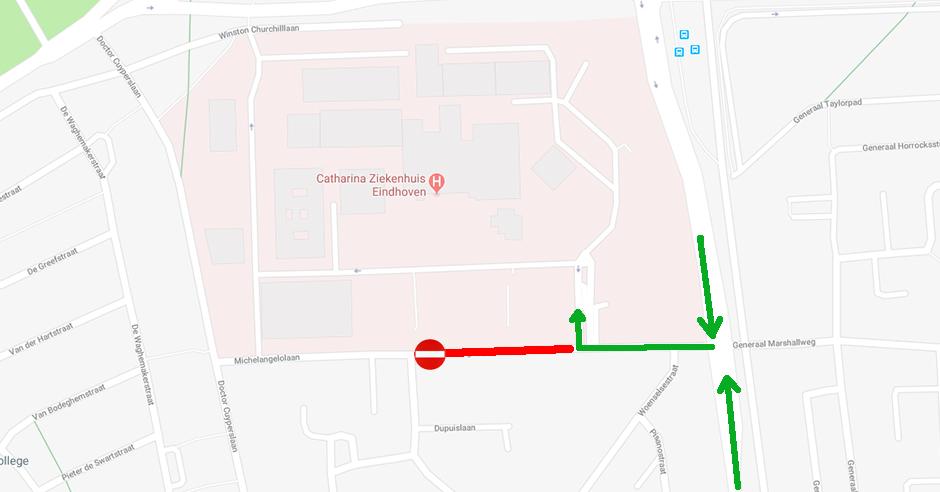 Om er voor te zorgen dat het Catharina Ziekenhuis bereikbaar blijft zijn er omleidingsroutes ingesteld. Volg hiervoor de gele borden. Ook zijn er verkeersregelaars aanwezig. Alle parkeerplaatsen blijven voor onze patiënten en bezoekers bereikbaar.