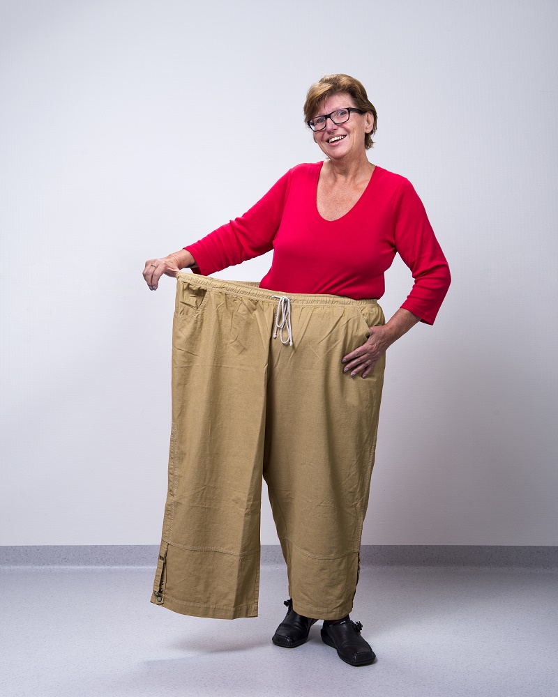 Janneke woog vijf jaar geleden nog ruim 130 kilo toen bij haar de knop om ging. “Ik was diabetespatiënt en had een lichte beroerte gehad. Ik merkte dat lichamelijk alles lastiger werd. Even naar boven lopen, dat deed zeer aan mijn knieën. Conditie? Ik wist niet wat dat was! Al die klachten zijn verdwenen. Ik sport zelfs elke week, hoewel dit nog steeds niet mijn hobby is, maar ik ga wel. Natuurlijk moet ik blijven letten op mijn eten, daarin heb ik levenslang. Maar ik weet nu veel beter wat ik moet eten en wat niet. En ik neem echt wel eens wat extra’s, zoals een toastje of een stukje chocolade. Vroeger at ik meteen een hele reep op. Dat gebeurt nu ook nog wel eens, maar dan betaal ik de tol, ik krijg er last van. Na mijn maagverkleining kan ik gewoonweg niet alles meer eten. Dat is logisch natuurlijk, want ze hebben driekwart van mijn maag weggehaald”, lacht ze.