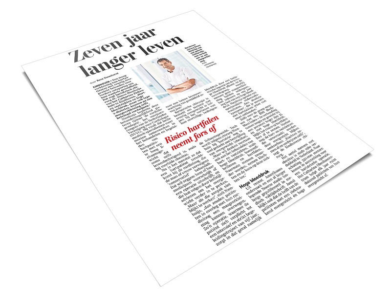 In zijn lezing draaide de chirurg het om. “Bij bariatrische operaties denkt men altijd alleen aan obesitas. Nu draait het om de behandeling van hart- en vaatziektes, zoals hoge bloeddruk, boezemfibrilleren en hartfalen.” Naarmate mensen zwaarder worden, nemen klachten en de kans op deze ziektes toe. “Door deze groep mensen met een BMI hoger dan 35 én een hoge bloeddruk te opereren blijkt het risico op hartfalen aanzienlijk af te nemen. Sterker nog: de hart- en vaatziekten die veroorzaakt worden door overgewicht zijn omkeerbaar. Klachten nemen af en verdwijnen zelfs. Mensen leven daarna gemiddeld zeven jaar langer.”