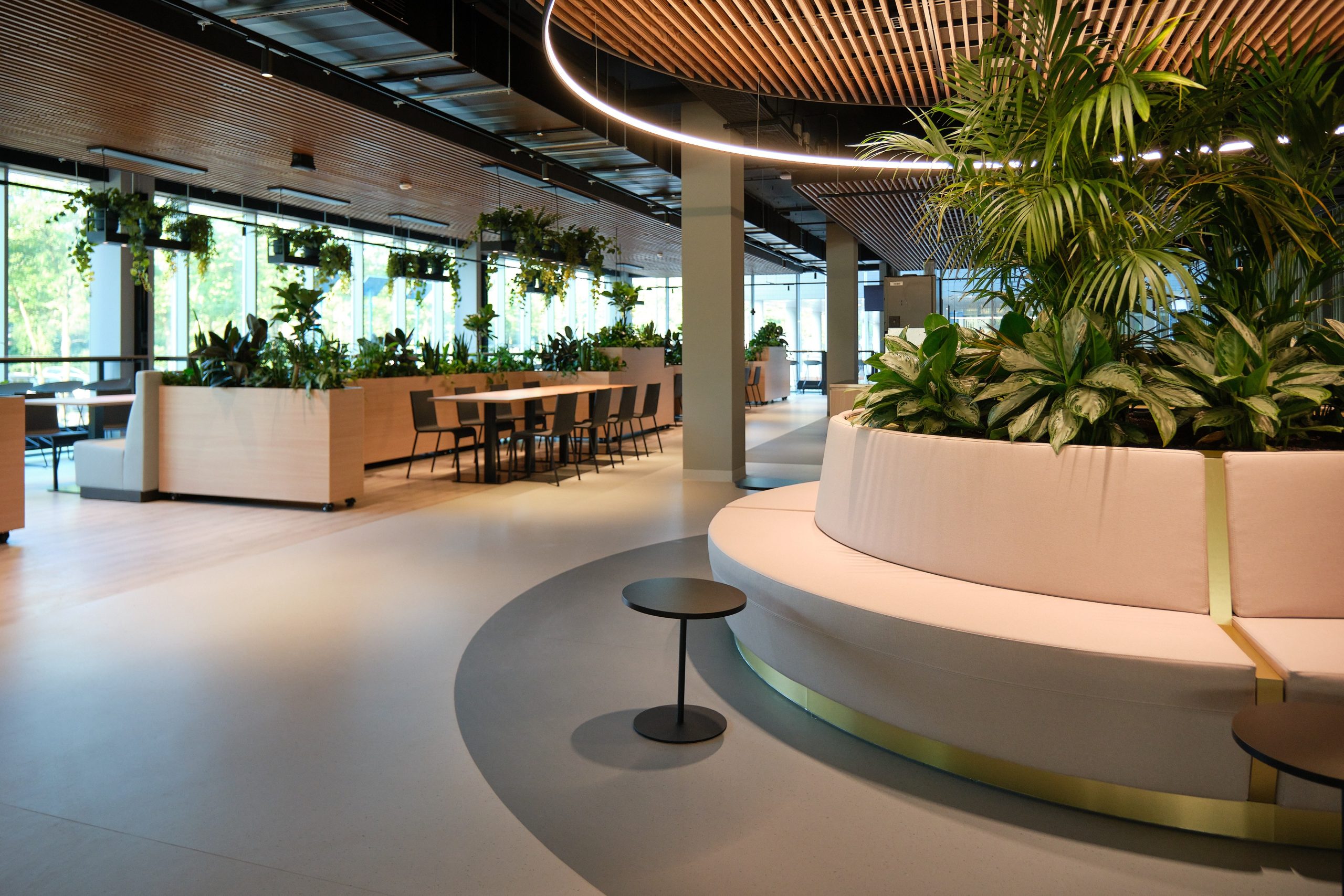 Een minder rumoerige, gezelligere ruimte, was een andere grote wens. Daarom is het restaurant aangekleed met veel planten, zijn er groene moswanden aangelegd, heeft het plafond akoestische panelen en worden de producten en maaltijden overzichtelijker en aantrekkelijker gepresenteerd om zo de beleving te verbeteren.