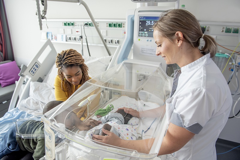 In het nieuwe Vrouw Kind Centrum wordt gekeken naar wie van de twee, moeder of kind, de meeste zorg nodig heeft. “Heeft het kind de meeste zorg nodig, dan gaat moeder mee naar de couveuseafdeling waar de verpleegkundige van de couveuseafdeling tevens de moeder verzorgt. Indien nodig wordt ook de obstetrie verpleegkundige bij de zorg betrokken. Het kan ook zijn dat moeder kwetsbaarder is en dat besloten wordt om de couveuse op de kraamsuite te plaatsen. Uitgangspunt is dat het contact tussen moeder en kind niet wordt onderbroken. En dat kunnen we nu in het nieuwe centrum garanderen”, aldus Smulders.