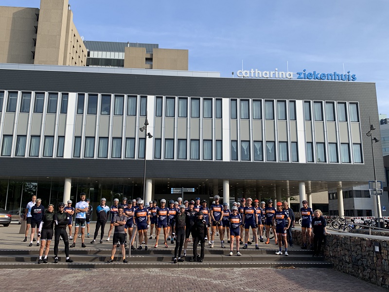 En zondagmorgen 10.00 uur was het Catharina Ziekenhuis aan de beurt. “Heel mooi en bijzonder dat we samen naar het Radboud in Nijmegen kunnen fietsen. Stoer ook, van mijn eigen chirurg. Ik hoop dat veel mensen mijn actie ondersteunen, deze studie is weer een belangrijke stap in de behandeling van buikvlieskanker.”