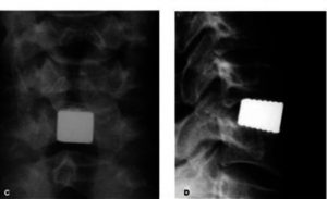 Halswervelkolom vooraanzicht en zijaanzicht, nadat er een cage is geplaatst. |