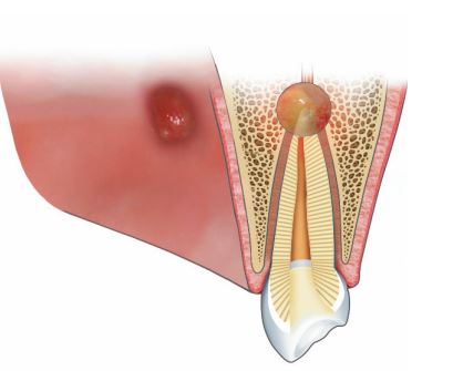 Wanneer het wortelkanaal niet helemaal schoon is, kan een ontsteking aan de wortelpunt blijven bestaan. Dit kan ook langere tijd na een wortelkanaalbehandeling gebeuren. Soms werkt de ontsteking zich een weg naar de mondholte, waarbij een soort puistje op het tandvlees kan ontstaan (fistel).