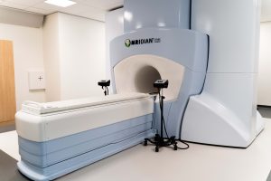 U wordt bestraald op de MR-Linac. Dit bestralingstoestel is een combinatie van een bestralingsapparaat en een MRI-scanner. MRI staat voor Magnetic Resonance Imaging. Met behulp van een heel sterke magneet worden afbeeldingen gemaakt.