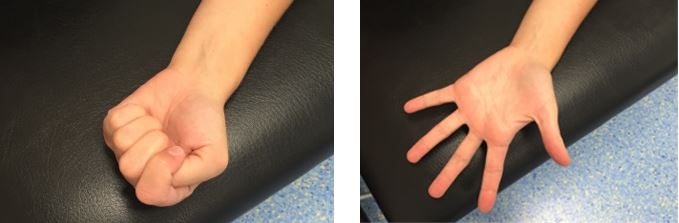- Maak met beide handen een vuist. Probeer de duim hierbij mee te nemen.