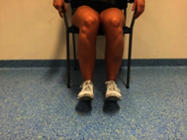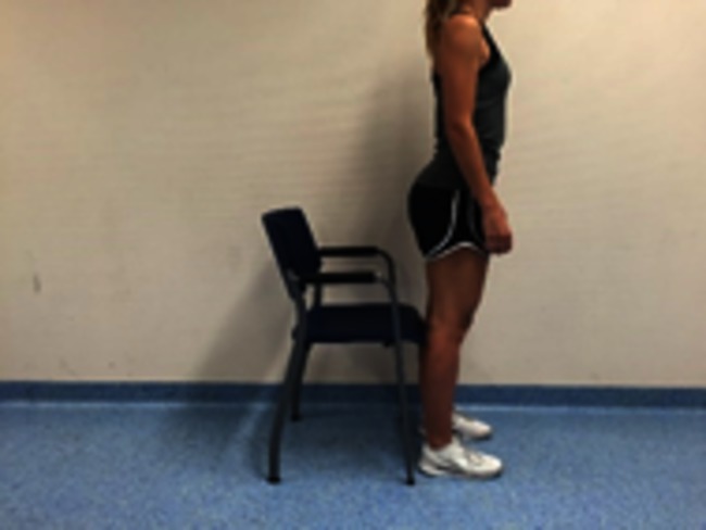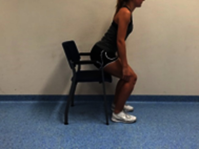 - Zak door uw benen tot de billen op kniehoogte zijn (net alsof u op de stoel gaat zitten)