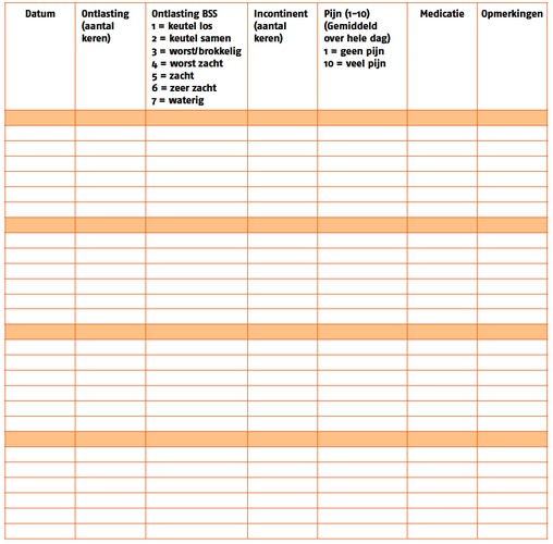 Dit dagboek is met toestemming overgenomen uit het ‘Evidence Statement Anale Incontinentie’ van KNGF.