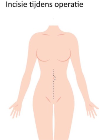 Bij de operatie maakt de chirurg een snede in de lengterichting (afbeelding 1) in de buik van het borstbeen tot aan het schaambeen. Hij kan nu alle organen in de buik goed bekijken. Het doel van de operatie is om alle zichtbare/voelbare ziekte te verwijderen. De chirurg verwijderd alle herkenbare kanker- en/of slijmweefsel uit de buik. Afhankelijk van de plaats en de hoeveelheid kankerweefsel kan het nodig zijn om ook delen van de darm of andere organen (zoals milt, galblaas, maag, vetschort, baarmoeder en/of eierstokken) weg te nemen. Wanneer er een stuk van de darm verwijderd moet worden, zijn er een aantal mogelijkheden. De darm kan weer aan elkaar gemaakt worden, in dat geval wordt er een darmnaad aangelegd. Wanneer dat niet mogelijk is kan het zijn dat er een stoma aangelegd moet worden. In 5-10% van de gevallen komt dit voor. Tijdens de operatie wordt beoordeeld of dit een tijdelijk of blijvend stoma zal zijn.