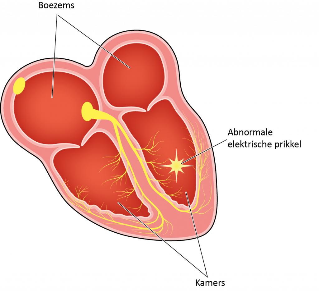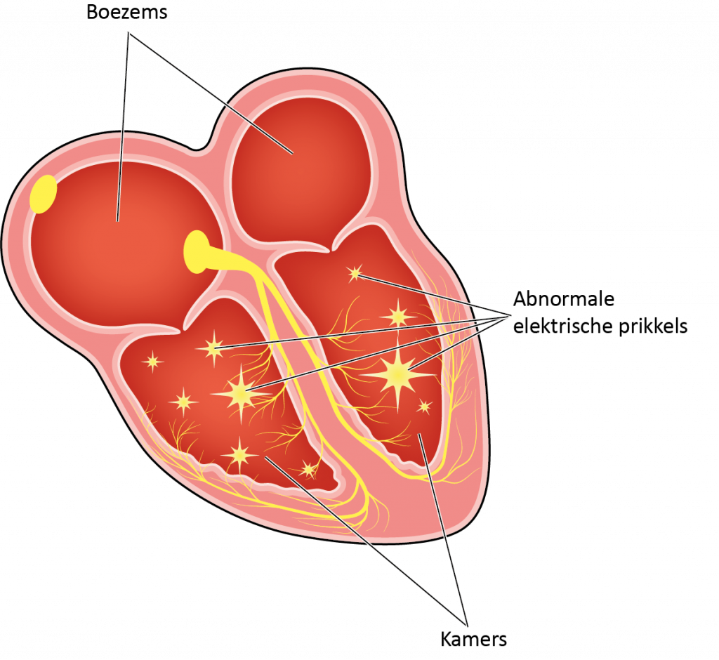 Bij kamertachycardie kan het hart honderd tot vierhonderd slagen per minuut kloppen.