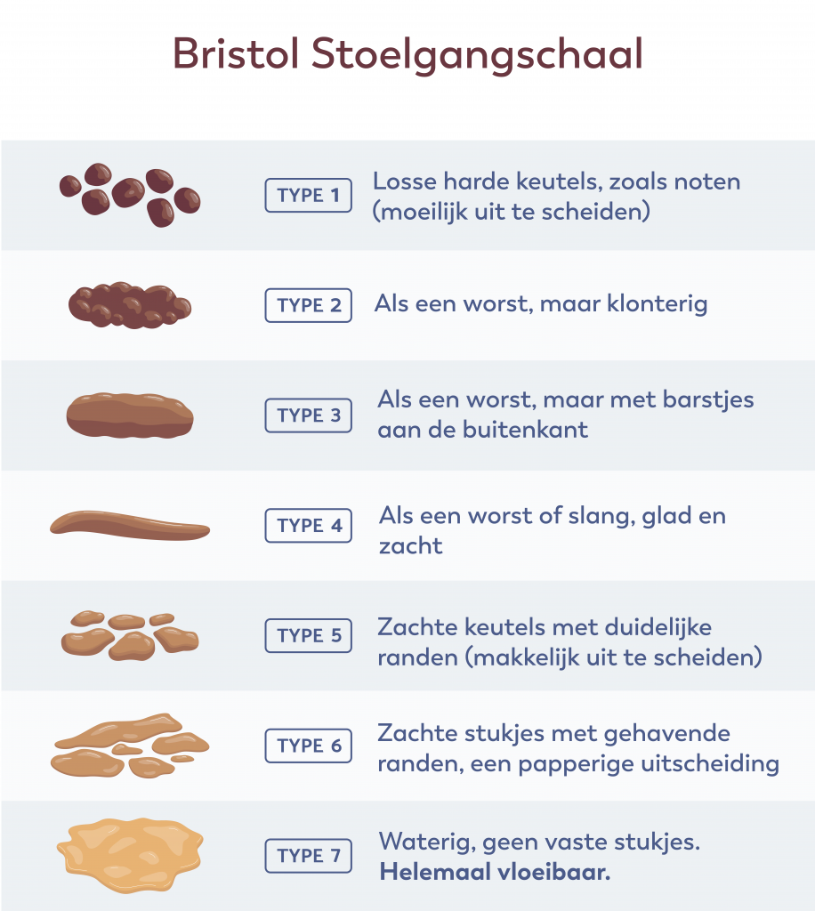 - Problemen met de stoelgang kunnen groter of kleiner zijn naarmate de ontlasting te dun of te dik is. Aan het eind deze folder vindt u de ‘Bristol ontlastingsschaal’. Deze schaal geeft aan welke vorm de ontlasting heeft en welke score daarbij hoort. De ideale score is tussen 3 en 4. We zullen tijdens de controles na de operatie de Bristol ontlastingsschaal bijhouden zodat we inzicht krijgen in uw klachten en kunnen kijken wat de effecten zijn van mogelijk ingezette behandelingen.