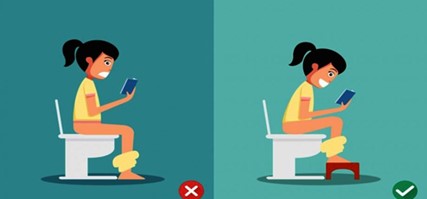 Wanneer u aandrang voelt, gaat u naar het toilet. Op dat moment komt de ontlasting het makkelijkst. Vaak voelt u aandrang na de maaltijd. Bij een langere periode van obstipatie is het lastiger om aandrang te voelen. Wie de aandrang vaak onderdrukt, voelt het na verloop van tijd niet meer. Neem voldoende tijd om naar het toilet te gaan. Blijf echter niet overmatig lang zitten. Dit kan weer andere klachten veroorzaken zoals aambeien. Komt de ontlasting niet, dan kunt u proberen dit te stimuleren door rustig in en uit te ademen. Dit kunt u ondersteunen door uw bekken een aantal keren voor- en achterover te kantelen. Tijdens het voorover kantelen ademt u in, bij het achterover kantelen ademt u uit. Komt de ontlasting nu nog niet, dan kunt u beter van het toilet af gaan en enkele minuten intensief bewegen, bijvoorbeeld springen, traplopen of wandelen. De aandrang kan hierdoor toenemen waardoor u de ontlasting mogelijk wel kunt lozen. Probeer deze adviezen altijd te volgen, ook wanneer het erg moeilijk gaat.