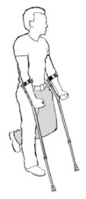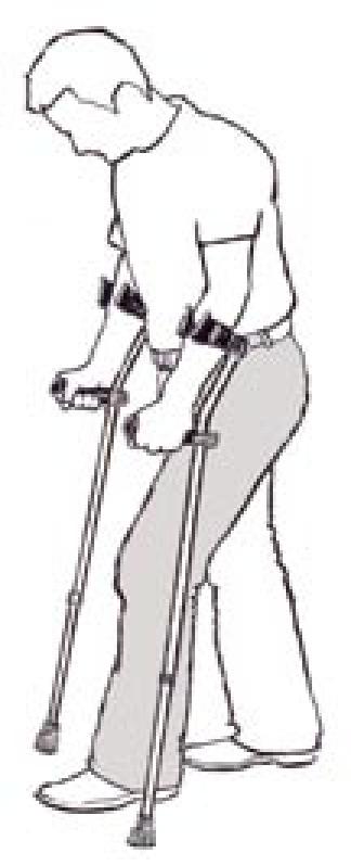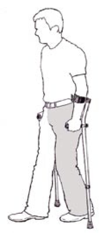 - Zet de krukken tegelijkertijd naar voren en steun erop (figuur1).
