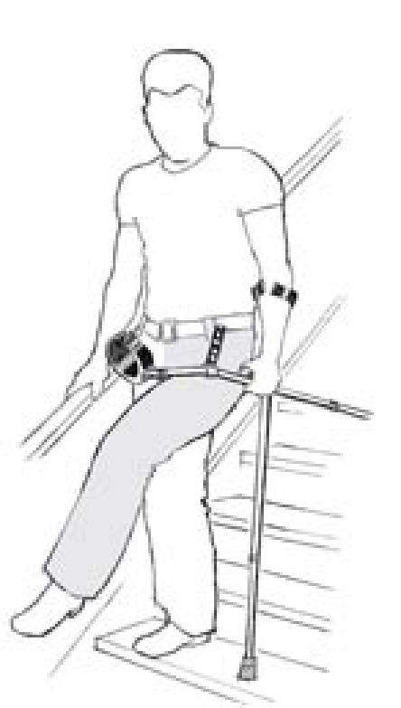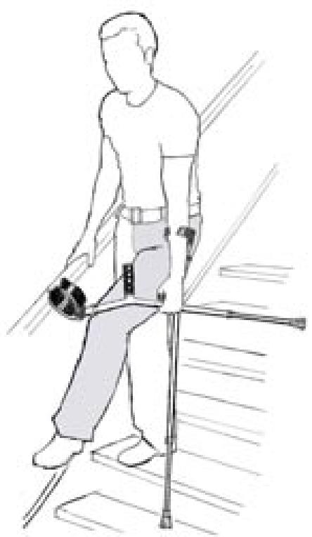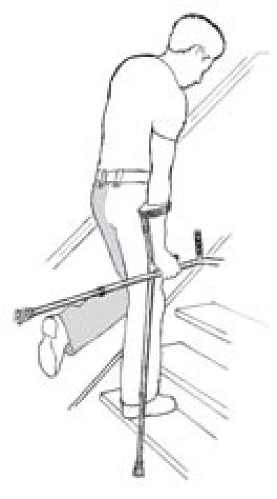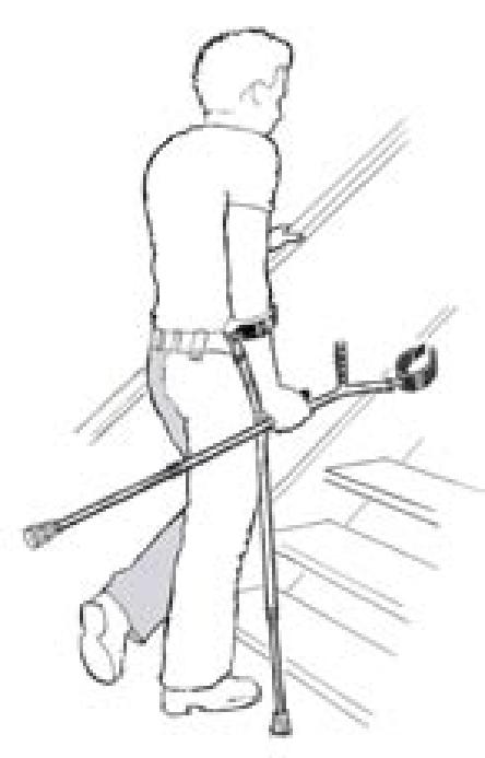 - Plaats het gezonde been op de volgende trede en zet daarna de kruk bij (figuur 6).