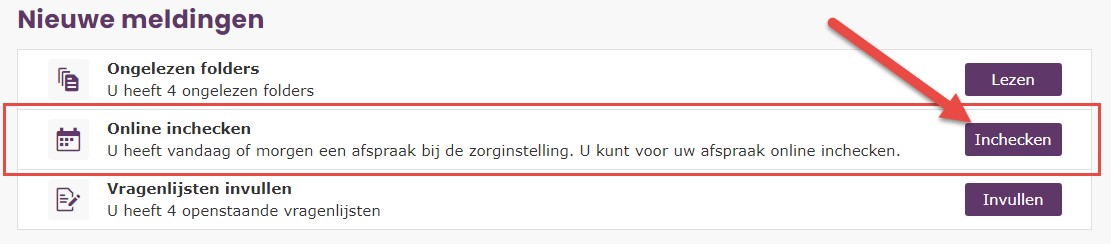 2. Klik op de startpagina op de knop ‘Inchecken’.