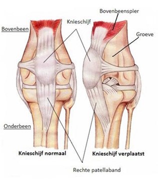 De patella (knieschijf) bevindt zich aan de voorzijde van de knie en zit vast aan de pees van de bovenbeenspier. De knieschijf, de bovenbeenspier en de aanhechting van de knieschijfpees op het onderbeen zorgen ervoor dat de knie gestrekt kan worden.