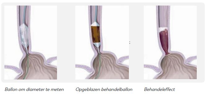 Het apparaatje wordt ingebracht en ingeschakeld waardoor de slokdarmwand wordt verhit in de te behandelen gebiedjes. Als alle gebiedjes zijn behandeld, wordt het betreffende gebied schoongemaakt.