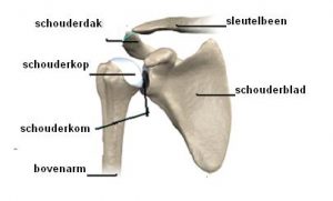 - Het gewricht tussen sleutelbeen en schouderdak (ook wel het ‘AC gewricht’ genoemd).