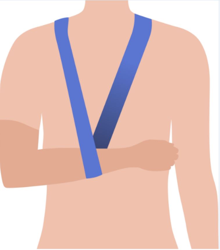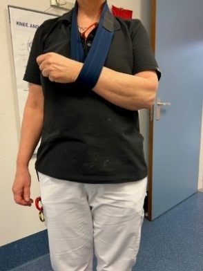 - Haal uw arm regelmatig uit de sling strek en buig de elleboog