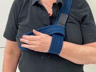 - Bij douchen mag de sling even af, zorg ervoor dat u geen onverwachte beweging maakt. Vraag aan iemand om u te helpen als dat nodig is.