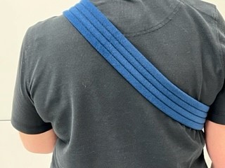Sling variant in geval van nekklachten: lus om de pols van de aangedane zijde, van voor naar achter om de schouder onder de arm.