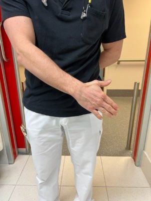 - Zorg er voor dat u de arm niet ondersteunt bij de elleboog, de arm kan dan niet uithangen. U mag de arm bijvoorbeeld niet op de leuning van een stoel leggen.