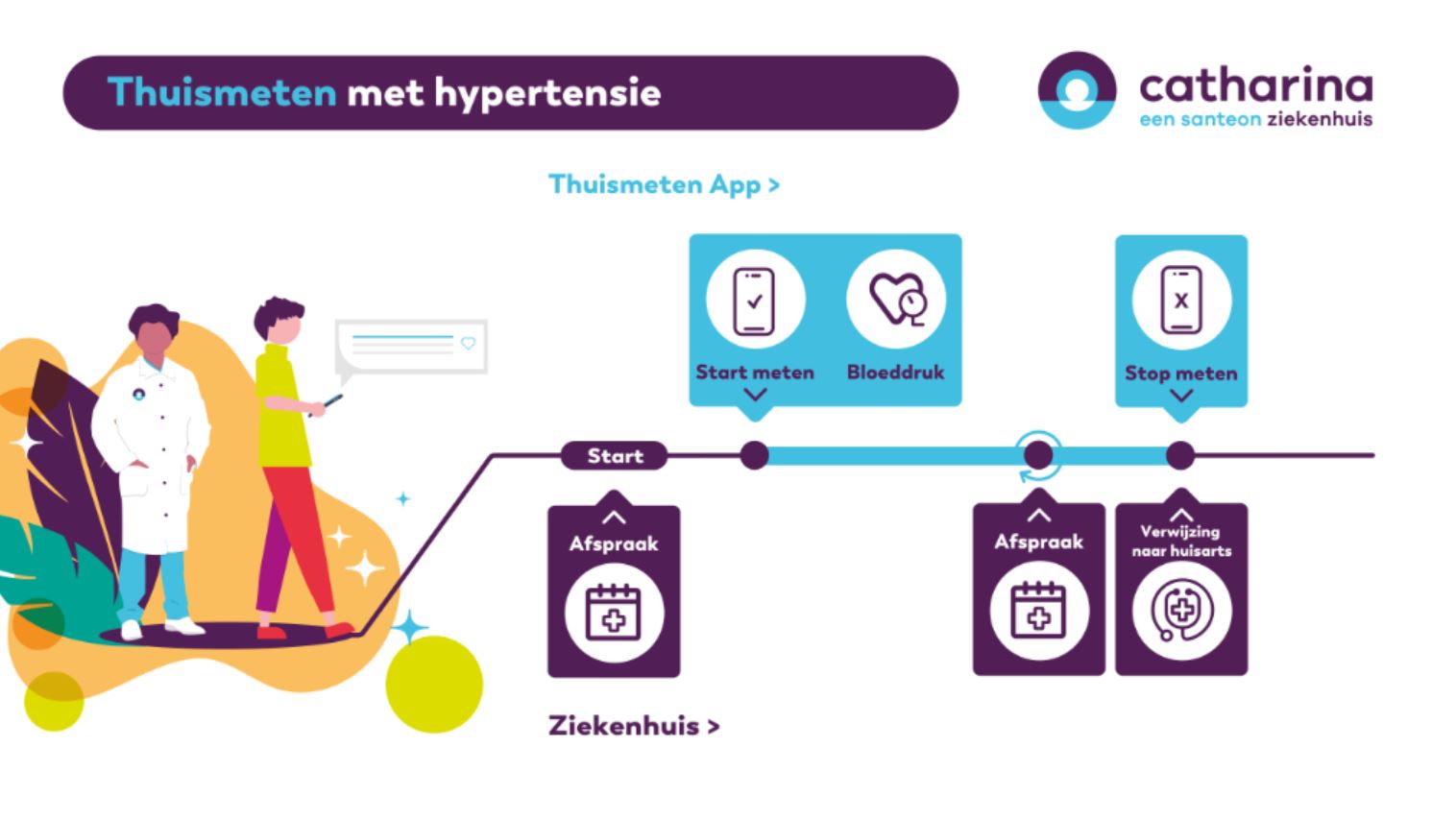 Uw behandelaar heeft aangegeven dat u gebruik kunt maken van thuismonitoring via de Thuismeten-app bij hoge bloeddruk. In deze folder vertellen wij u over het thuismeten van uw bloeddruk via de Thuismeten-app, zodat we uw bloeddruk goed in de gaten kunnen houden en u niet steeds naar het ziekenhuis hoeft te komen.