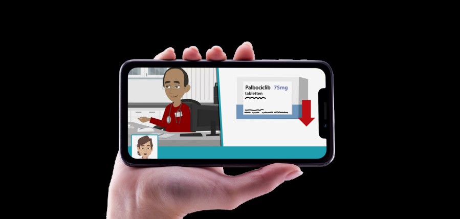 Met KIJKgesprek wordt de uitleg in de spreekkamer in beeld weergegeven aan de hand van (bewegende) iconen. Per e-mail ontvangt de patiënt een link naar een specifieke animatievideo over de CDK4/6-remmer op KIJKsluiter.nl. Ook kan de patiënt een KIJKsluiter-account aanmaken om animatievideo’s over de aandoening, het medicijn en eventuele hulpmiddelen te bekijken. Via het KIJKsluiter-account ontvangt de patiënt gedurende het gebruik van het medicijn berichten met aanvullende informatie, tips en adviezen. Stichting KIJKsluiter maakt medische informatie toegankelijk en begrijpelijk voor iedereen.