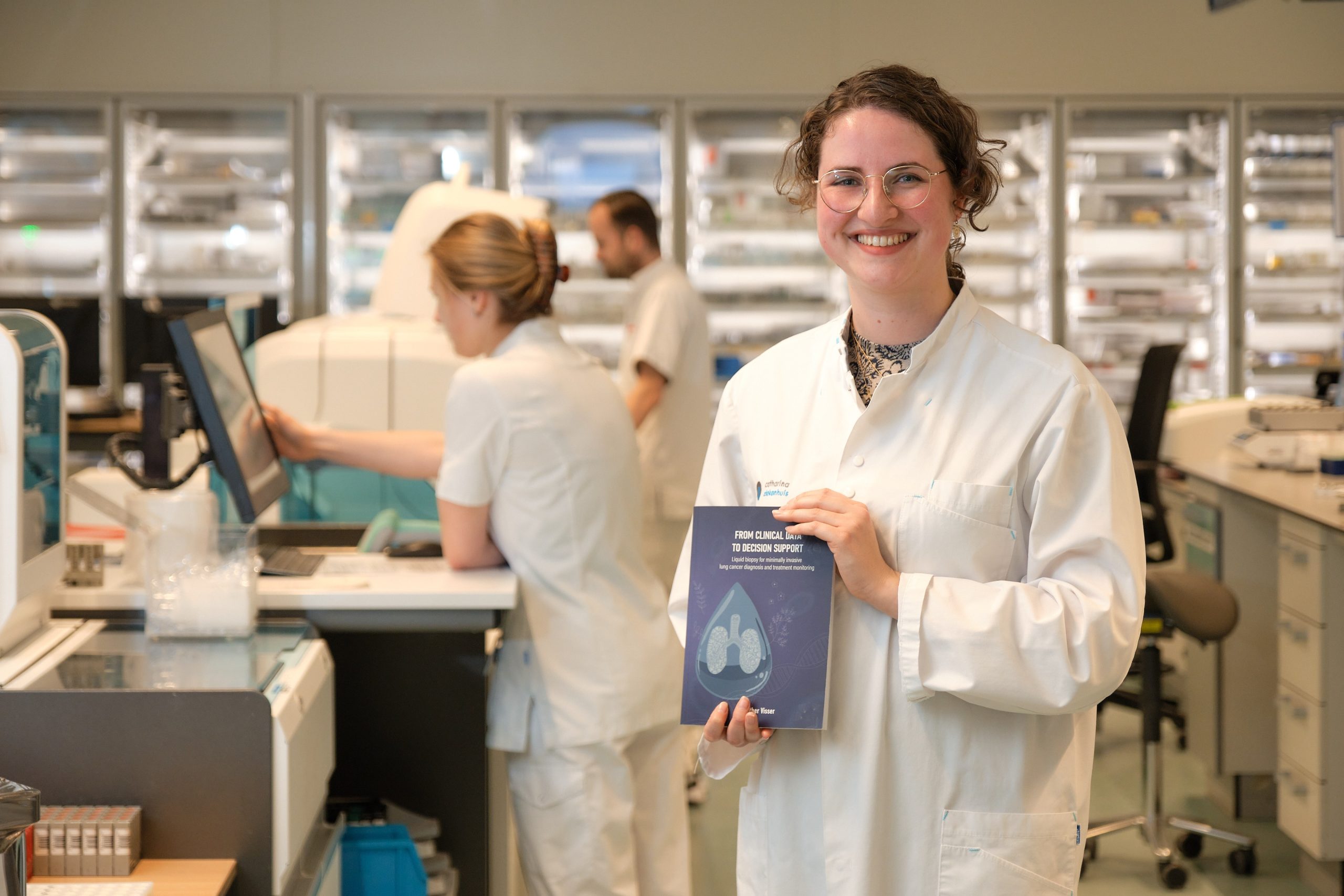 Het diagnosticeren van longkanker is voor patiënten vaak een belastend proces. Voor een betrouwbare diagnose moeten zij soms meerdere onderzoeken ondergaan, zoals scans en weefselafnames via een naald of buis. Maar wat als een simpele bloedtest dezelfde informatie kan geven? Esther Visser deed de afgelopen vier jaar onderzoek in het Catharina Ziekenhuis naar deze mogelijkheid en promoveert vandaag aan de TU/e. Haar bevindingen zijn veelbelovend.