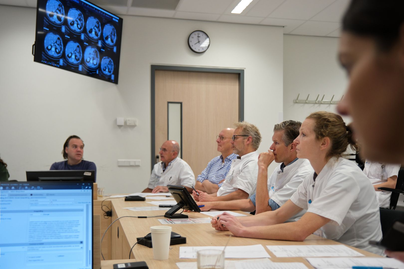 Donderdagochtend kwart voor acht. De vergaderzaal in het Catharina Ziekenhuis zit vol specialisten: oncologisch chirurgen, medisch oncologen, MDL-artsen, een radioloog, een nucleair geneeskundige, een patholoog, radiotherapeut-oncoloog en verpleegkundig specialisten. Op de grote beeldschermen aan de muur verschijnen artsen uit het Anna, Máxima Medisch Centrum, Bernhoven en het Elkerliek. Samen bespreken zij tientallen patiënten tijdens het Multidisciplinair Overleg (MDO) slokdarm-, maag en alvleesklierkanker. Zo krijgen patiënten de best mogelijke zorg zonder dat ze daarvoor hoeven te reizen en alle onderzoeken opnieuw moeten ondergaan.