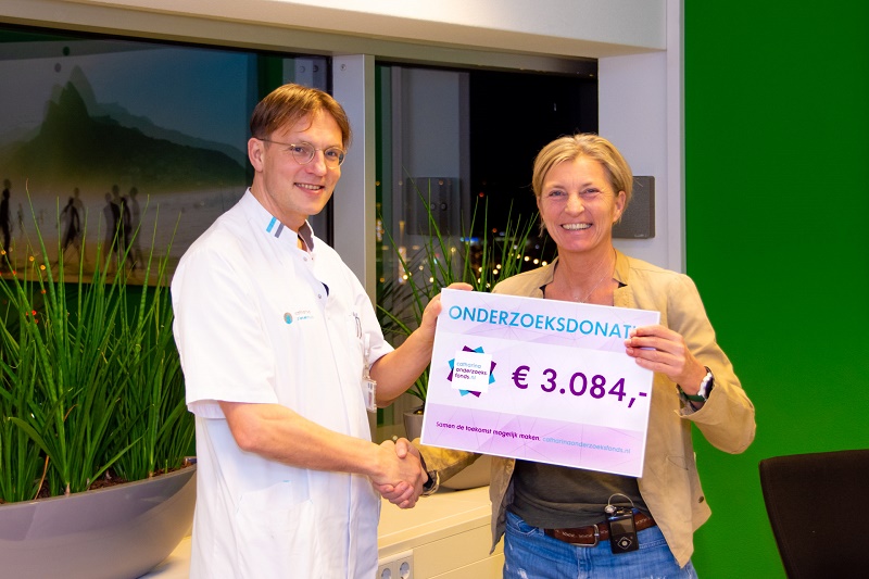 Jeanne van den Reek (53) uit Helmond liep deze zomer in twaalf dagen het Canarische eiland Fuerteventura over om geld in te zamelen voor het Catharina Onderzoeksfonds. Met haar wandeltocht wilde ze aandacht vragen voor vulvakanker (schaamlipkanker). Gisteren overhandigde ze een cheque van 3084 euro aan haar specialist gynaecoloog-oncoloog dr. Jurgen Piek.