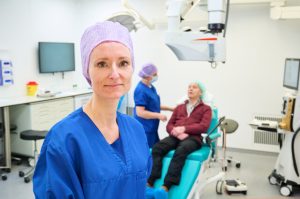 Voor Van Tol en haar collega’s is de tijdwinst, in tegenstelling tot voor de patiënt, nihil. “Wij doen in feite twee operaties. Als het ene oog behandeld is, dan beginnen we weer met nieuwe materialen aan het volgende oog. Het zijn in feite twee losse operaties, alleen blijft de patiënt nu in de operatiekamer.”