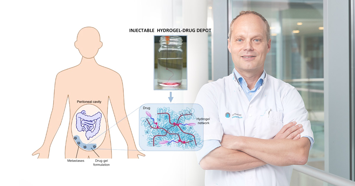 In hun zoektocht naar een toepassing van deze gel kwamen de onderzoekers in contact met prof. dr. Ignace de Hingh van het Catharina Ziekenhuis. Hij zocht iets voor gebruik in de buikholte. De Hingh heeft door de jaren heen een internationale reputatie opgebouwd op het gebied van buikvlieskanker. Hij is continu op zoek naar nieuwe behandelmethoden voor deze kwetsbare patiëntengroep. “Er wordt al langer nagedacht over hoe je chemotherapie voor langere tijd op de juiste plek kunt brengen”, zegt hij. “Je wilt de chemo nergens anders in het lichaam, dan daar waar de kanker zit, omdat ze op andere plekken bijwerkingen veroorzaakt.”